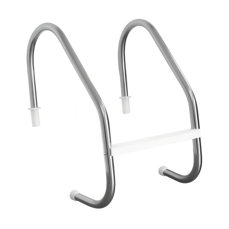 O corrimão é fabricado em aço inox polido e espelhado, material reconhecido pela alta durabilidade, excelente resistência mecânica e proteção contra o desgaste e a corrosão provocados pelos produtos químicos utilizados na água da piscina.